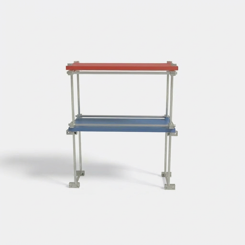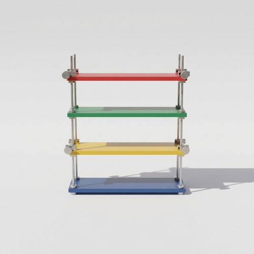 The YurtSpace Espresso Bar Rack II features premium aluminum linear rods for a sleek, industrial look that holds mugs, sugar jars, stirrers, and coffee accessories with ease. Red upper shelf displays cups vibrantly, blue lower shelf steadily supports coffee makers or pots—dual-tier design maximizes counter space in modern kitchens.